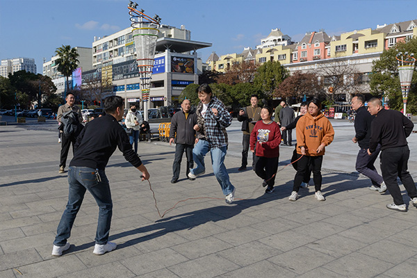 “跳短绳”、“踢毽子”和“拉绳角力”则活力满格,选手们身姿轻快地在梅川路缤纷生活体验街Hi.PARK地标小广场展开角逐。跳绳翻飞划出连贯弧线,毽子轻扬在脚尖灵动跳跃,拉绳角力张力十足,明快的比拼节奏与身旁色彩鲜亮的“Hi.PARK”标识、头戴圣诞帽的萌趣小象相映成趣。鲜活的街景映衬着职工们的轻快身影与拼搏姿态,将昂扬向上的青春朝气融入休闲街的烟火气息之中,勾勒出一幅动感与激情交织的画面。